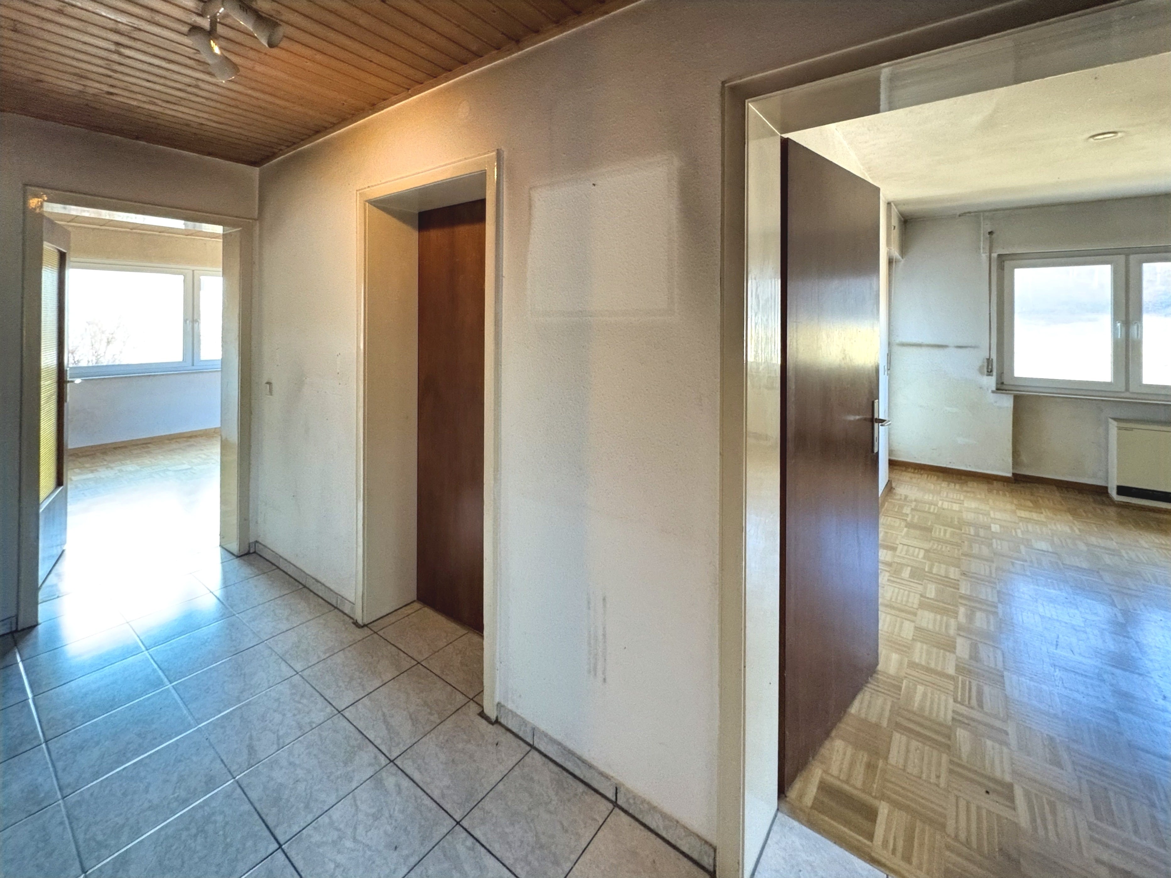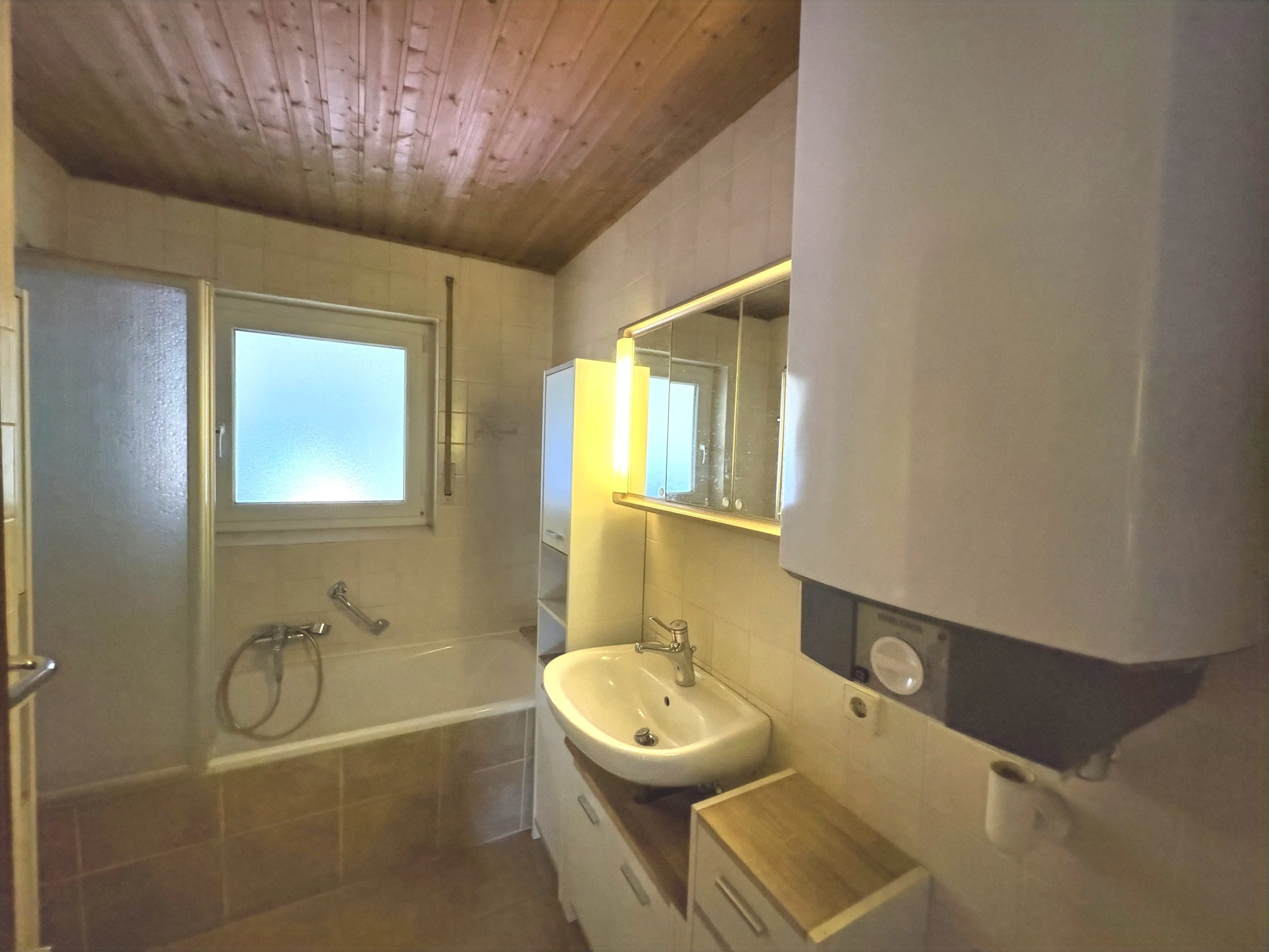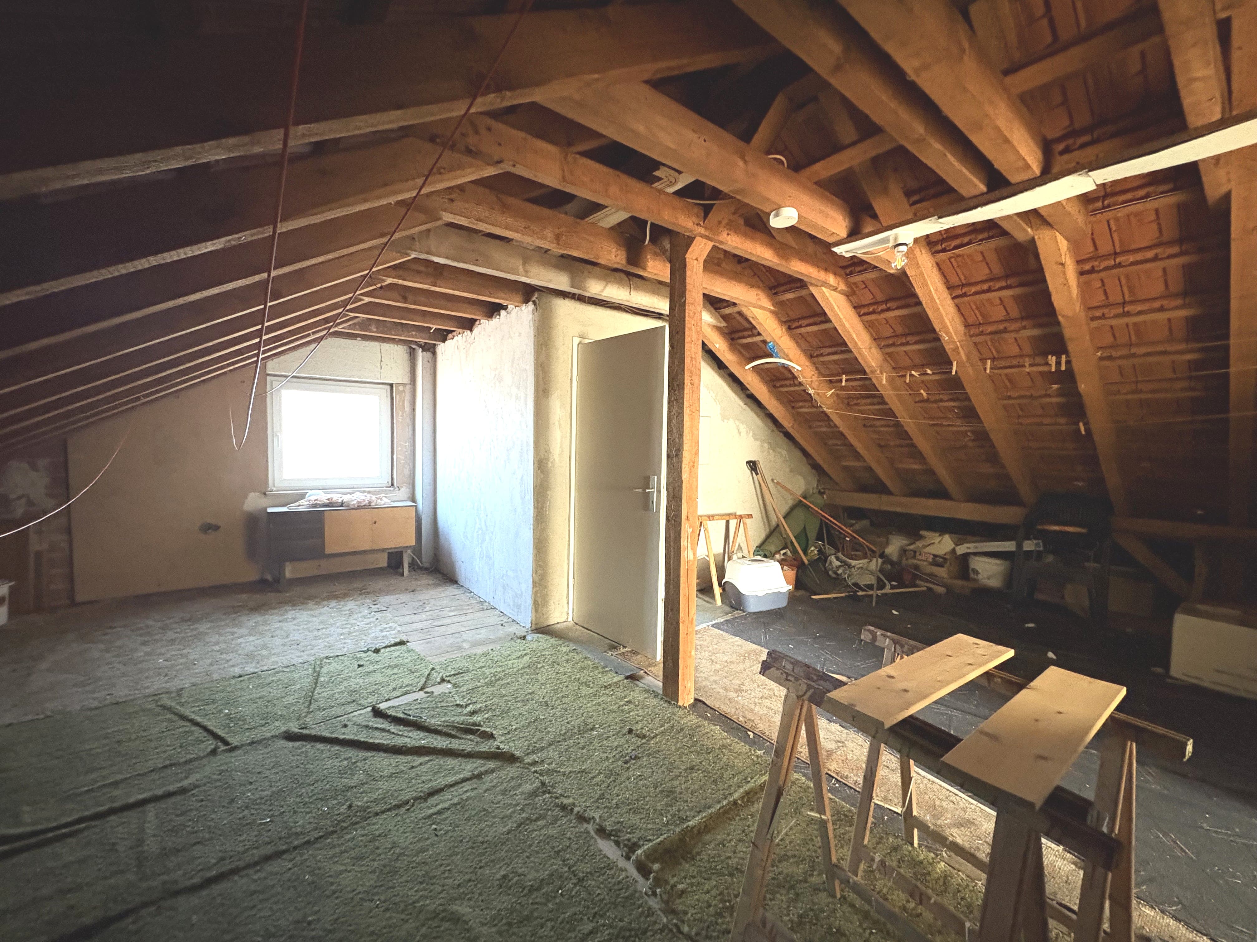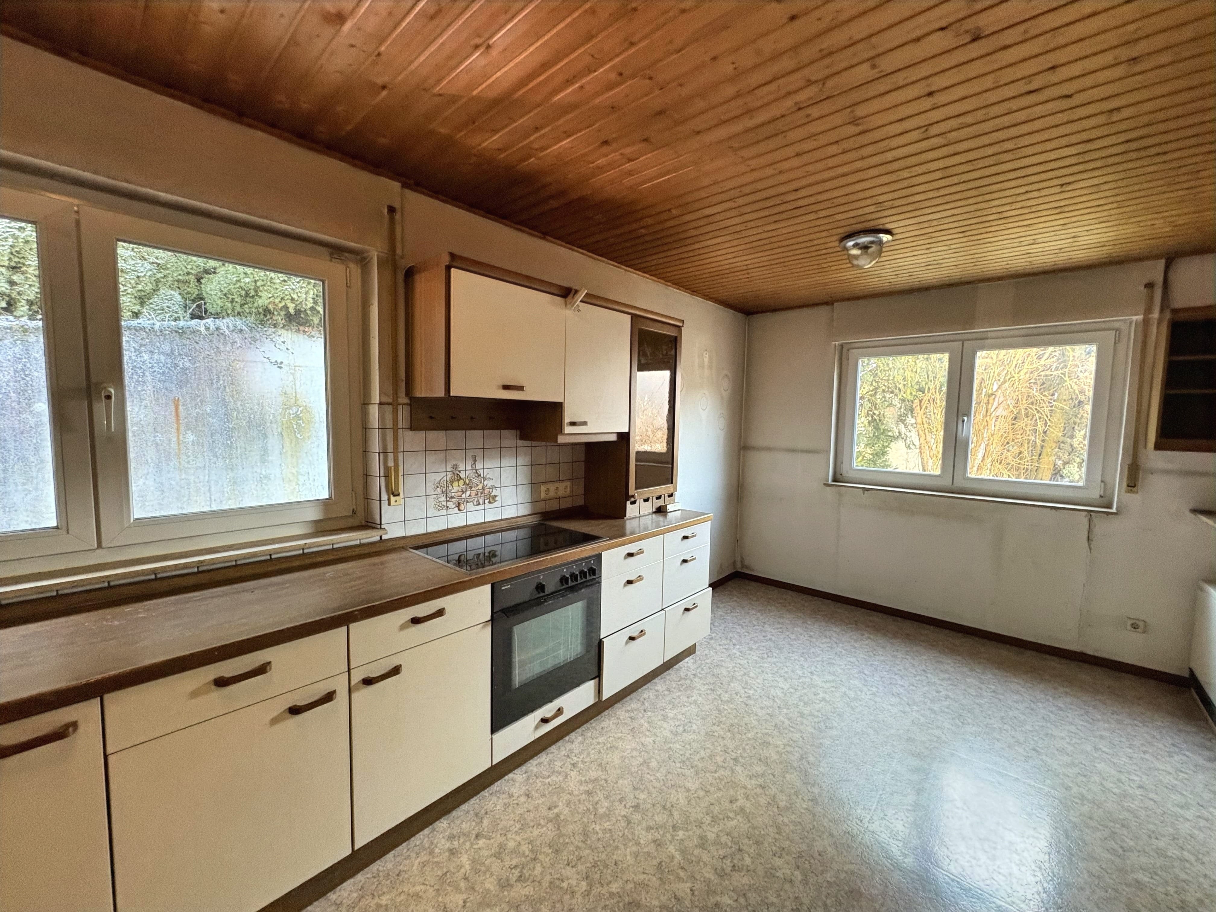 Zum Verkauf steht ein massiv gebautes Zweifamilienhaus aus dem Jahr 1967 mit zwei Garagen. Die Immobilie befindet sich in renovierungsbedürftigem Zustand und bietet vielfältige Nutzungsmöglichkeiten – ideal für Handwerker, Mehrgenerationenwohnen, Wohnen und Arbeiten unter einem Dach oder als Kapitalanlage. Im Untergeschoss befindet sich eine ca. 67 m² große Eigentumswohnung mit 2 Zimmern, Küche und Bad. Ein angrenzender Kellerraum ist direkt zugeordnet. Die Wohnung verfügt über eine Terrasse, die im Zuge des Garagen- und Terrassenanbaus im Jahr 2005 realisiert wurde. Das Erdgeschoss bietet eine Wohnfläche von ca. 105 m² mit zwei Zimmern, einem großzügigen Wohnzimmer mit Zugang zum Balkon und schönem Ausblick, einer geräumigen Küche sowie einem Badezimmer mit Fenster und separatem WC. Die Fenster wurden 2020 erneuert und sind als 3-fach verglaste Kunststofffenster ausgeführt. Im Dachgeschoss ist bereits ein Zimmer ausgebaut; zusätzlich besteht weiteres Ausbaupotenzial auf der Bühnenfläche, wodurch zusätzlicher Wohnraum geschaffen werden kann. Trotz des renovierungsbedürftigen Zustands überzeugt die Immobilie durch ihre solide Bausubstanz, die flexible Raumaufteilung und das vorhandene Entwicklungspotenzial.