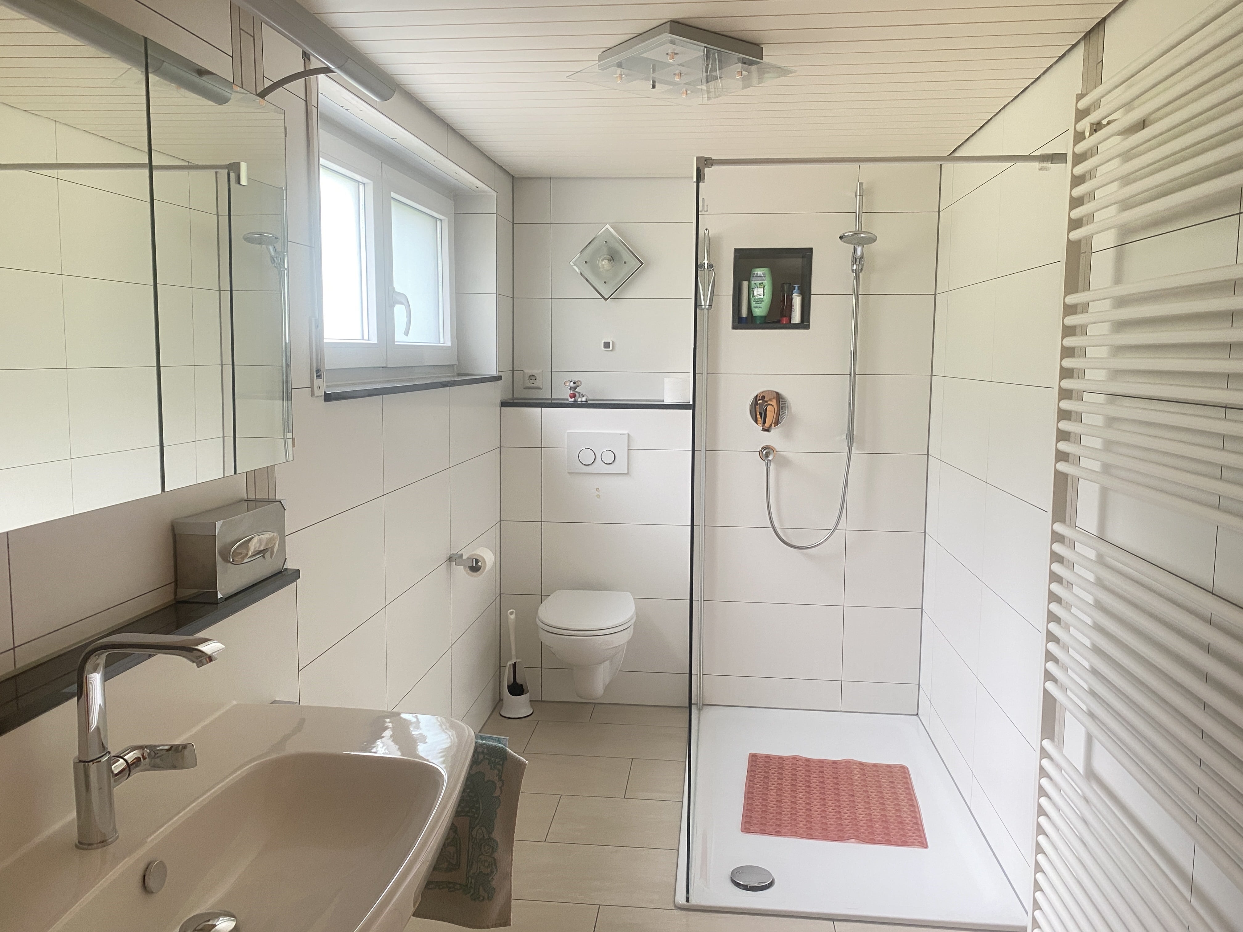 Dieses sehr gepflegte und modernisierte Einfamilienwohnhaus (Nordmark Fertighaus) ist das ideale Eigenheim für Ihre Familie! Im Erdgeschoss gelangen Sie über die Diele in den hellen Wohn- und Essbereich mit großer Schiebetüre, die Sie direkt in den neu angelegten Garten führt. Ebenfalls im Erdgeschoss befinden sich das Badezimmer mit Tageslicht, Badewanne, Dusche und WC sowie ein separates Gäste-WC, ein geräumiges Schlafzimmer und die praktische Küche. Im Obergeschoss/Dachgeschoss sind ein WC und zwei große helle Räume, einer davon mit großem Balkon und herrlichem Ausblick zur Schwäbischen Alb. Das Haus ist voll unterkellert. Im Untergeschoss liegen ein modernes Badezimmer mit Tageslicht, bodengleicher Dusche und WC, zwei Zimmer, die sich hervorragend als Gästezimmer, Kinderzimmer oder Arbeitszimmer eignen, die Technikräume sowie ein großer Vorratsraum.
